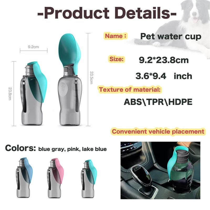 Stay prepared and keep your pet refreshed wherever your adventures take you with the 800ml Portable Dog Water Bottle.